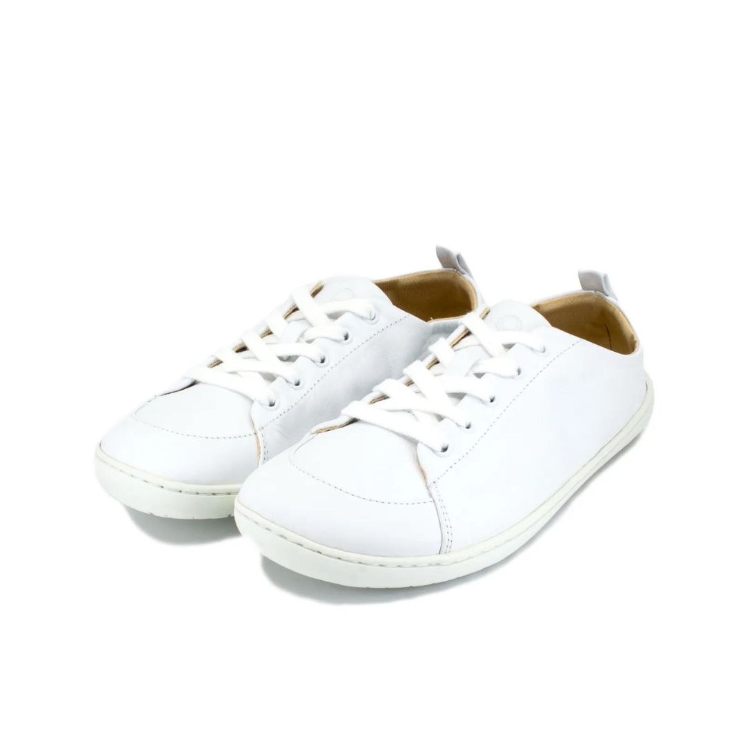 Izjemno lahki in prožni beli usnjeni čevlji.