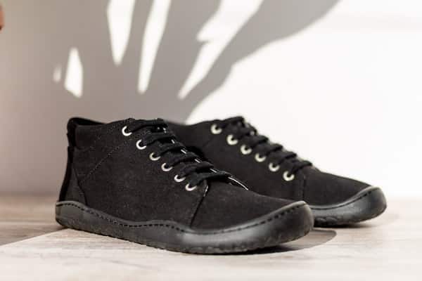 Bosonogi čevlji Original Tormenta so narejeni iz organskega bombaža v črni barvi in imajo vodoodbojno zaščito. Podloženi so s konopljo, ki je naravno vpojna, termoregulacijska in antibakterijska.